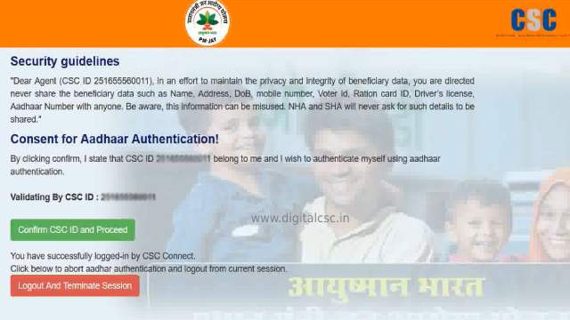 - After getting approval, d your Consent for Aadhaar Authentication by clicking “Confirm CSC ID and Proceed.”